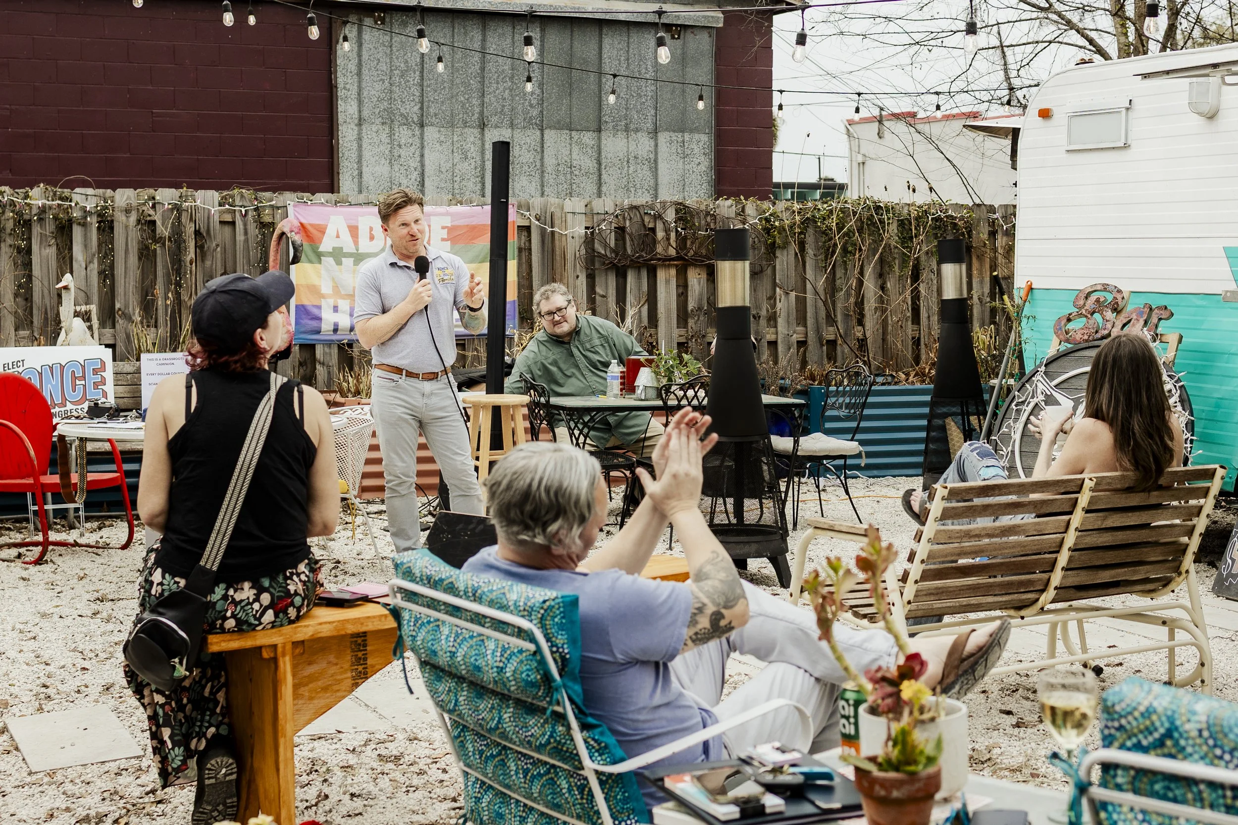 Community members gathered at Petey’s Beer and Wine Garden in Palatka on Saturday to hear from Eric Yonce, a Democrat who is running to unseat Randy Fine in Florida’s 6th congressional district.